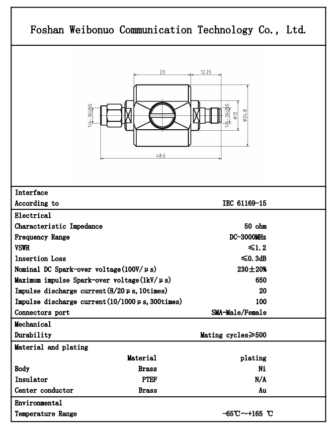 Nominal DC Spark-over voltage(100V/μs):230±20%